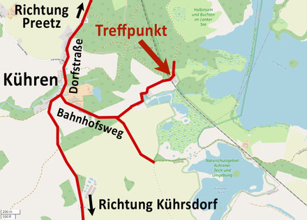 Treffpunkt: Parkplatz am Bahnübergang im Bahnhofsweg, Kühren (Navi: Bahnhofsweg 8, Kühren)