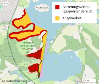 EU-rechtlich geschützte Lebensräume und Arten zu erhalten sind. Das Naturschutzgebiet (NSG) „Halbinseln und Buchten im Lanker See“ als Teil des Vogelschutzgebietes umfasst seit